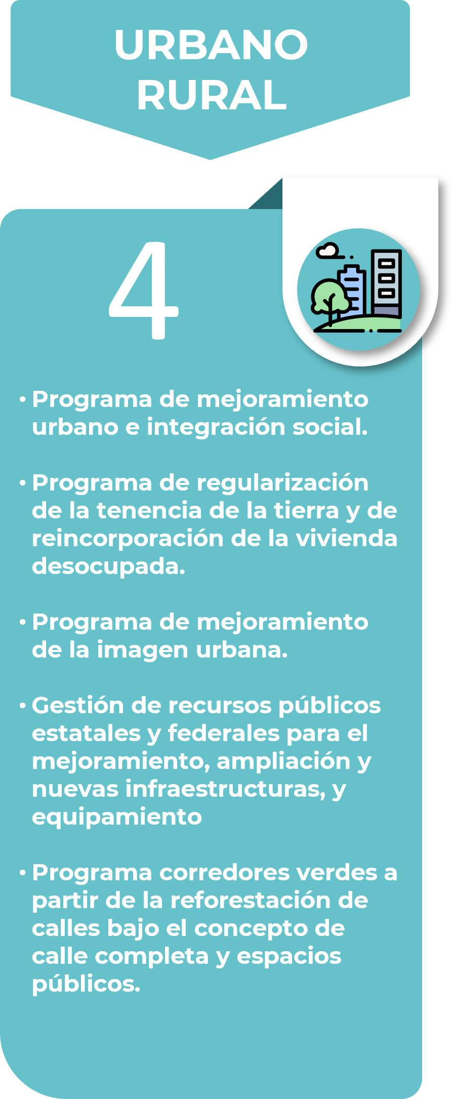 INSTRUMENTO DE ORDENAMIENTO TERRITORIAL Y DESARROLLO URBANO ALINEADO A LA LEGISLACIÓN, NORMATIVIDAD URBANA VIGENTE EN LOS DIFERENTES NIVELES DE PLANEACIÓN; ASÍ COMO, A LOS OBJETIVOS DE DESARROLLO SUSTENTABLE (ODS), SIENDO EL DE MAYOR RELEVANCIA EL OBJETIVO DE “CIUDADES Y COMUNIDADES SOSTENIBLES” QUE BUSCA LOGRAR POBLACIONES INCLUSIVAS, SEGURAS, RESILIENTES Y SOSTENIBLES; Y A LA NUEVA AGENDA URBANA DE LA ONU QUE PROMUEVE CIUDADES MÁS INCLUYENTES, COMPACTAS Y CONECTADAS MEDIANTE LA PLANIFICACIÓN Y DISEÑO URBANO, GOBERNANZA Y LEGISLACIÓN URBANA Y, ECONOMÍA URBANA; SEÑALA LAS ACCIONES PARA UN CORRECTO APROVECHAMIENTO DEL TERRITORIO; LA CONSERVACIÓN, MEJORAMIENTO Y CRECIMIENTO DE LOS CENTROS DE POBLACIÓN, MEDIANTE LA ZONIFICACIÓN PRIMARIA Y SECUNDARIA, ESPECIFICANDO LOS MECANISMOS DE INSTRUMENTACIÓN DE SUS PRINCIPALES PROYECTOS, ENFOCADOS EN LA CREACIÓN DE RESERVAS TERRITORIALES, INFRAESTRUCTURA, EQUIPAMIENTO, SERVICIOS, SUELO SERVIDO, VIVIENDA, ESPACIOS PÚBLICOS, ENTRE OTROS.